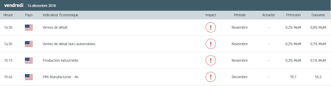 - Les ventes au détail du mois de novembre aux Etats-Unis à 14h30