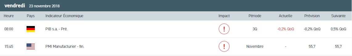 - L’indice PMI composite (secteur manufacturier et des services) du mois de novembre en zone euro à 10h00