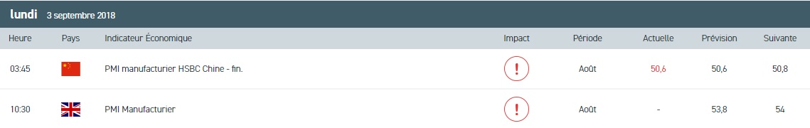 Une fois de plus, les marchés européens ont ouvert sur une note négative en raison des tensions commerciales. Néanmoins, la séance du jour sera relativement calme car les Bourses de Wall Street sont fermées en raison du Labor Day. Concernant le calendrier économique de ce lundi, nous prendrons connaissance de l’indice PMI manufacturier du mois d’août en Allemagne, en zone euro et au Royaume-Uni. Outre les données relatives à l’activité du secteur privé, nous nous intéresserons cette semaine aux chiffres du chômage aux Etats-Unis. Sur le volet des changes, la vigueur dollar américain continue de pénaliser les devises des pays émergents. Au moment où nous écrivons ces lignes, la livre turque se traite à environ 6,58 livres pour 1 $.