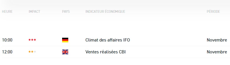 - Climat des affaires IFO en Allemagne (nov) à 10h