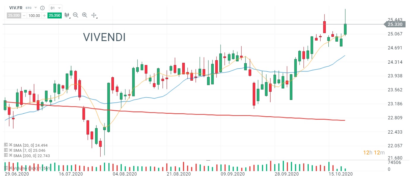 Nous avons pris connaissance hier des résultats de Vivendi (VIV.FR), supérieurs aux attentes (3,8 milliards) avec un CA de 4 milliards d’euros. Au cours du troisième trimestre, Vivendi (VIV.FR) profite pleinement des bonnes performances de streaming d’UMG (Universal Music Group), et à la forte croissance à l'international de Canal+.