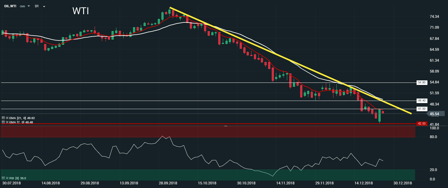 Représentation technique du contrat WTI en unité de temps journalière (D1)