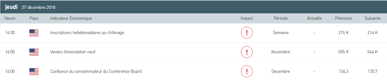 - Les inscriptions hebdomadaires au chômage pour les Etats-Unis à 14h30