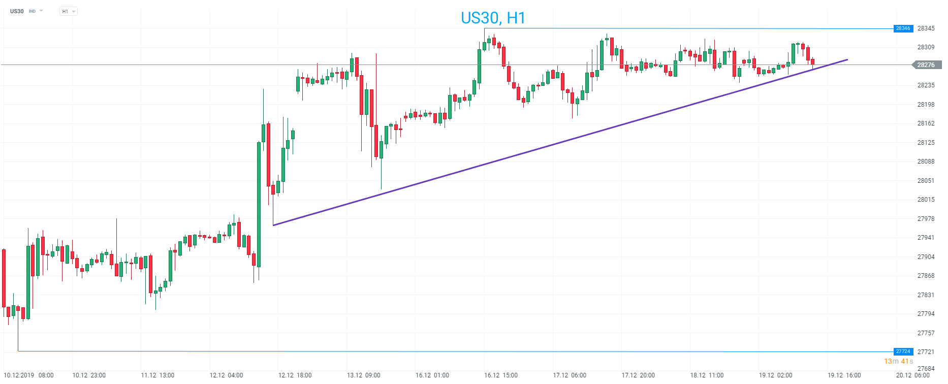 Le US30 se négocie à environ 70 points de son sommet record de 28 346 points au moment de la rédaction de ces lignes. Source : xStation