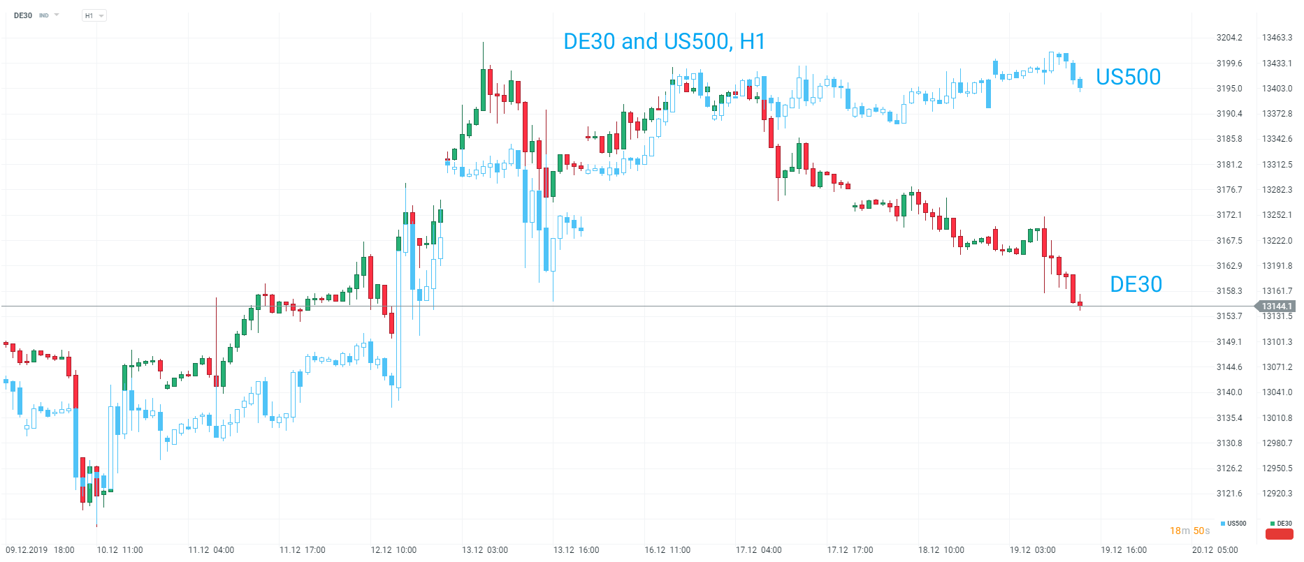 Il y a eu une faiblesse évidente des marchés européens dans les échanges récents, mais pour l'instant, les États-Unis semblent s'en sortir et tenir le coup. Le DE30 a chuté d'environ 250 points dans les échanges récents, mais l'US500 continue de se négocier juste en dessous des 3 200 avant la cloche d'ouverture. Source : xStation