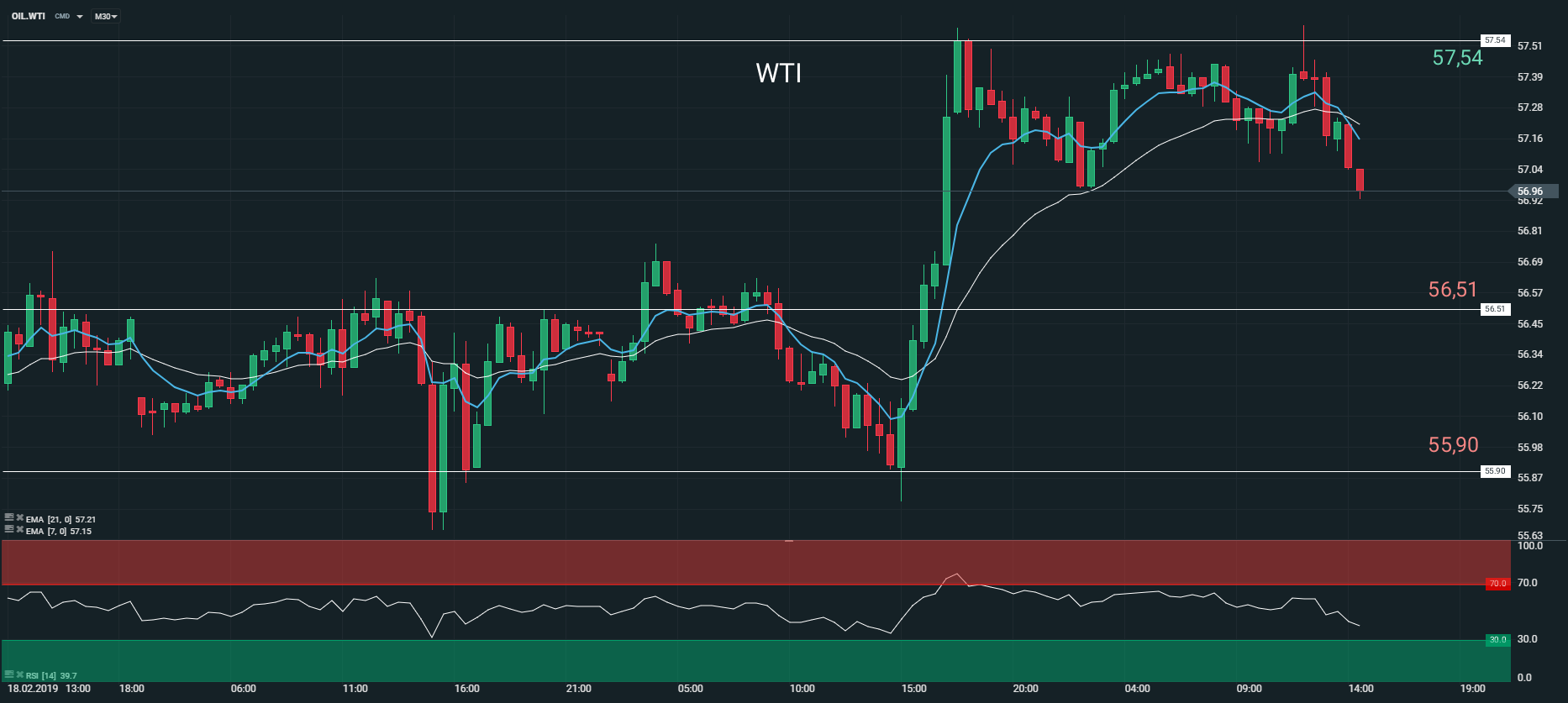 Au moment où nous écrivons ces lignes, le WTI est stable (+0,03 %) autour des 57,2 $ le baril. L’actif évolue sur des plus hauts de trois mois et progresse grâce aux avancées commerciales entre la Chine et les Etats-Unis et la « patience » de la Réserve fédérale en matière de politique monétaire. En effet, le vice-Premier ministre chinois, Liu He, se rendra à Washington ce jeudi afin de poursuivre les discussions avec Steven Mnuchin, secrétaire au Trésor, et Robert Lighthizer, représentant au Commerce américain.