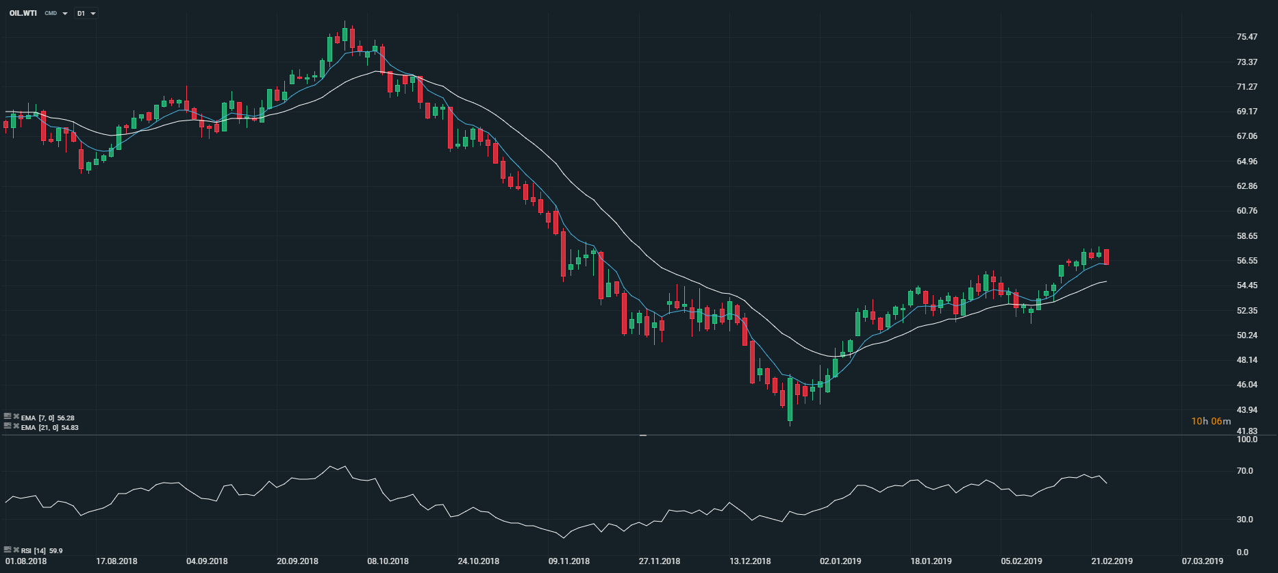 Au moment où nous écrivons ces lignes, le WTI accuse un repli de 1,41 % à 56,34 $ le baril. Les prix du pétrole sont en chute libre après le nouveau tweet de Donald Trump. En effet, le président des Etats-Unis estime que les prix sont en train de s’envoler et que l’OPEP devrait cesser de réduire sa production de pétrole.