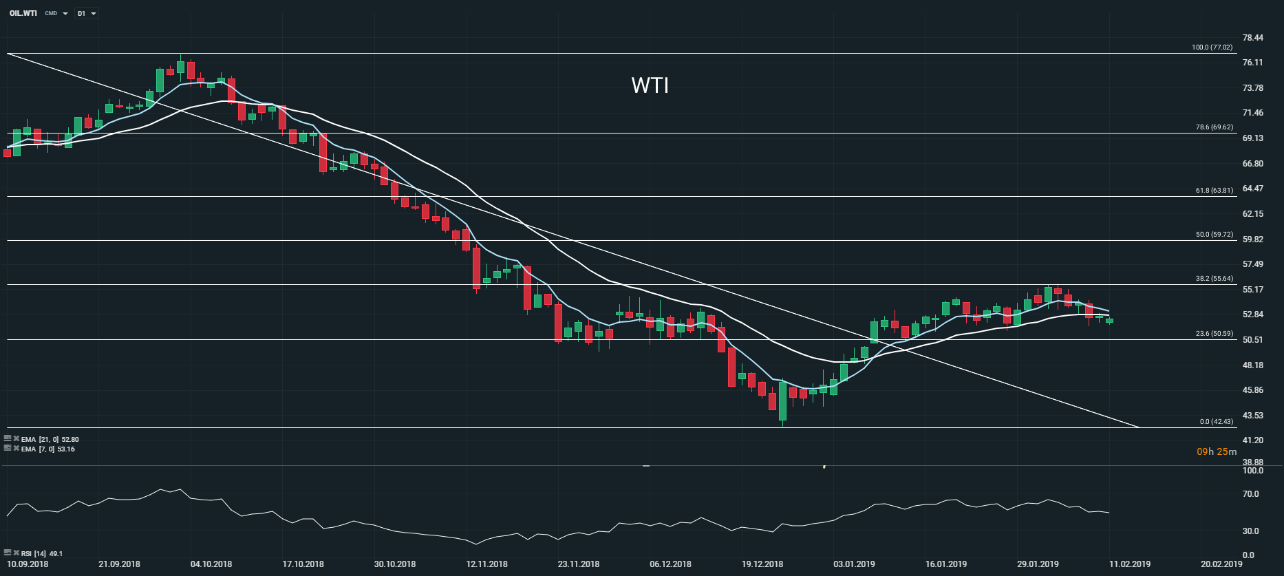 Représentation technique du contrat WTI, en D1