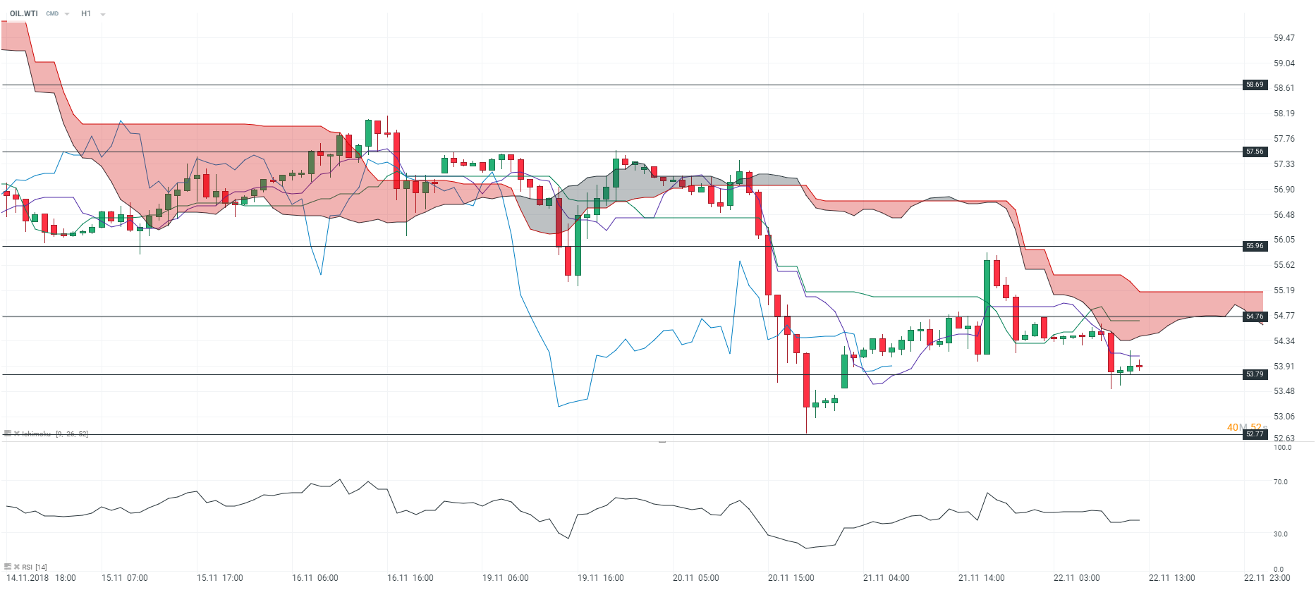Représentation technique du contrat WTI, en H1