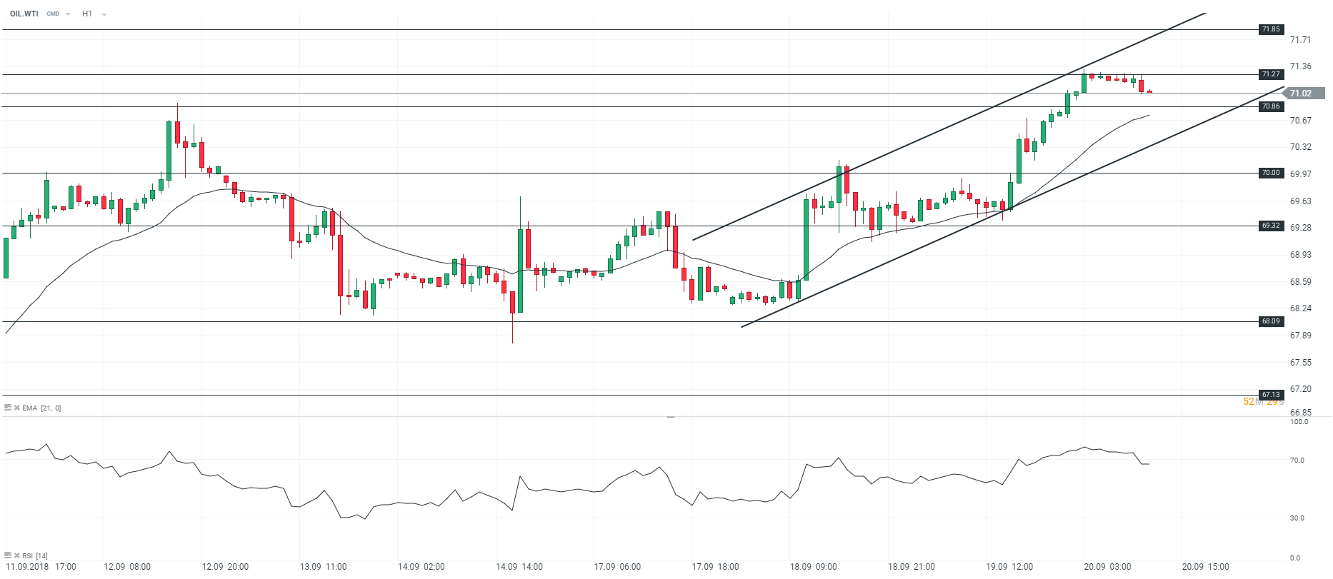 D’après le département de l’Energie américain (DoE), les stocks de brut ont reculé de 2,05 millions de barils pour la semaine terminée au 14 septembre. En outre, les stocks d’essence se sont repliés de 1,7 million de barils. En revanche, les produits distillés ont progressé de 839 000 barils sur la même période. Dans ce contexte, le WTI a terminé mercredi en hausse de 1,82 % à 71,12 $ e baril. Toutefois, les opérateurs restent préoccupés par les perspectives de réduction de l’offre en provenance d’Iran, d’autant que les autres pays du Golfe ne souhaitent pas compenser le « manque à produire » afin de soutenir les prix sur les cotations actuelles.