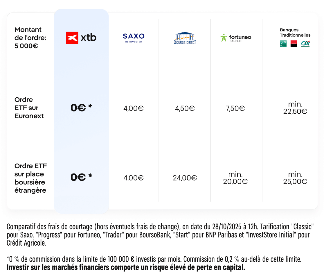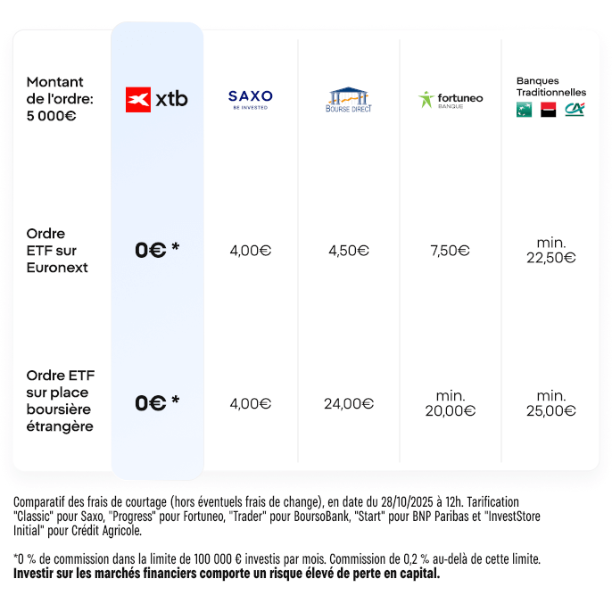 0 % de commission sur vos ordres ETF jusqu'à 100 000€ investis par mois.
