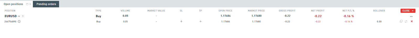 Vous pouvez également doubler votre transaction (ouvrir une autre transaction de la même taille) ou l'inverser (fermer et ouvrir une transaction dans la direction opposée) en cliquant sur les boutons à droite de la transaction ouverte.
