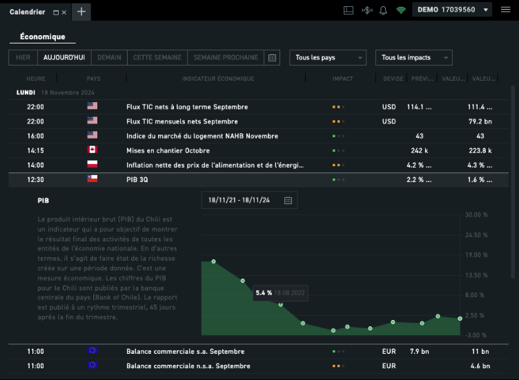 Afin d’obtenir un accès avancé sur les évènements macroéconomique il est indispensable d’utiliser un calendrier macroéconomique qui peut être accessible ici. De plus, les utilisateurs de xStation n’ont pas d’utiliser un lien externe, toutes les données sont accessibles depuis la plateforme.