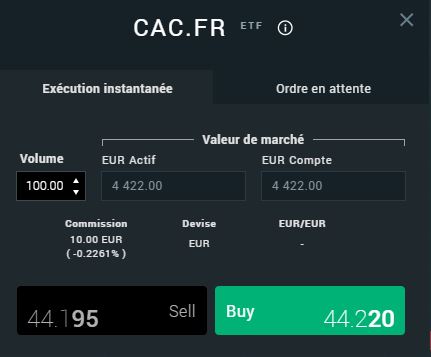 À partir de ces calculs, vous voyez que le coût de transaction sera de 2,20 EUR et que vous avez besoin d'au moins 999.00 EUR sur votre compte d'investissement pour ouvrir une transaction de cette taille. La marge est le montant du dépôt de garantie collecté pour une position ouverte. Sur la base de ces valeurs, le bénéfice attendu de la transaction peut être évalué.