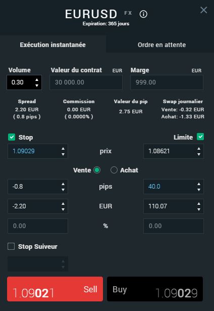 Valeur du pip : 2.75 EUR