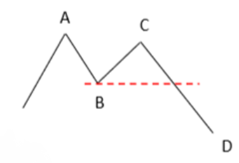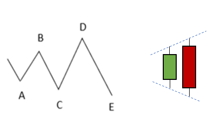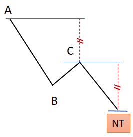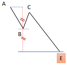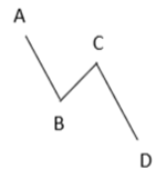 - Formation baissière : La vague « i » haussière (BC) retrace moins de 50% de la 1ère vague « i » baissière (AB). BC se formera dans sur un horizon de temps élevé.
