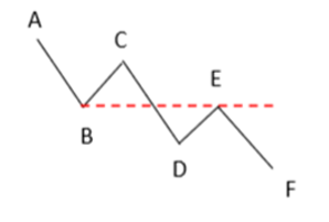 - Formation baissière : La vague « i » haussière (BC) retrace moins de 50% de la 1ère vague « i » baissière (AB).