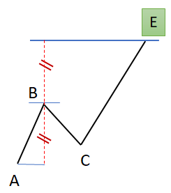 - Formation haussière : La vague « i » baissière (BC) retrace moins de 50% de la 1ère vague « i » haussière (AB). BC se formera dans sur un horizon de temps élevé.