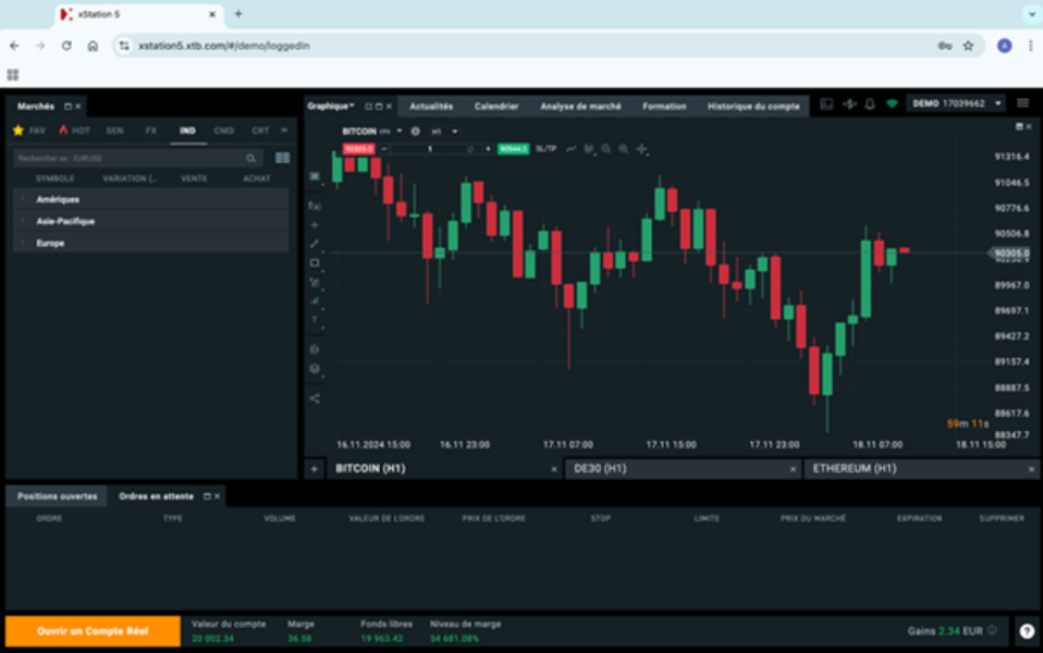 "Ce matériel est une communication marketing au sens de l'art. 24, paragraphe 3, de la directive 2014/65 /UE du Parlement européen et du Conseil du 15 mai 2014 concernant les marchés d'instruments financiers et modifiant la directive 2002/92 /CE et la directive 2011/61 /UE (MiFID II). La communication marketing n'est pas une recommandation d'investissement ou une information recommandant ou suggérant une stratégie d'investissement au sens du règlement (UE) n°596/2014 du Parlement européen et du Conseil du 16 avril 2014 sur les abus de marché (règlement sur les abus de marché) et abrogeant la directive 2003/6 / CE du Parlement européen et du Conseil et directives 2003/124 / CE, 2003/125 / CE et 2004/72 / CE de la Commission et règlement délégué (UE) 2016/958 de la Commission du 9 mars 2016 complétant le règlement (UE) n°596/2014 du Parlement européen et du Conseil en ce qui concerne les normes techniques de réglementation relatives aux modalités techniques de présentation objective de recommandations d'investissement ou d'autres informations recommandant ou suggérant une stratégie d'investissement et pour la divulgation d'intérêts particuliers ou d'indications de conflits d'intérêt ou tout autre conseil, y compris dans le domaine du conseil en investissement, au sens de la loi du 29 juillet 2005 sur le commerce des instruments financiers. (c.-à-d. Journal des Lois 2019, point 875, tel que modifié). L’ensemble des informations, analyses et formations dispensées sont fournies à titre indicatif et ne doivent pas être interprétées comme un conseil, une recommandation, une sollicitation d’investissement ou incitation à acheter ou vendre des produits financiers. XTB ne peut être tenu responsable de l’utilisation qui en est faite et des conséquences qui en résultent, l’investisseur final restant le seul décisionnaire quant à la prise de position sur son compte de trading XTB. Toute utilisation des informations évoquées, et à cet égard toute décision prise relativement à une éventuelle opération d’achat ou de vente de CFD, est sous la responsabilité exclusive de l’investisseur final. Il est strictement interdit de reproduire ou de distribuer tout ou partie de ces informations à des fins commerciales ou privées. Les performances passées ne sont pas nécessairement indicatives des résultats futurs, et toute personne agissant sur la base de ces informations le fait entièrement à ses risques et périls. Les CFD sont des instruments complexes et présentent un risque élevé de perte rapide en capital en raison de l'effet de levier. 75% de comptes d'investisseurs de détail perdent de l'argent lors de la négociation de CFD avec ce fournisseur. Vous devez vous assurer que vous comprenez comment les CFD fonctionnent et que vous pouvez vous permettre de prendre le risque probable de perdre votre argent. Avec le Compte Risque Limité, le risque de pertes est limité au capital investi."