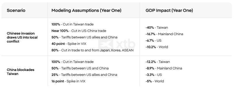 Les estimations modélisées montrent qu’une guerre à Taïwan pourrait avoir un impact plus important sur le PIB mondial que d’autres chocs récents.