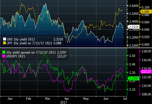 Mais il ne se réfère pas seulement à l'USDJPY. Les mouvements dans les taux qui conduisent à un rétrécissement ou à l'élargissement d'un écart entre eux pourraient conduire à des mouvements importants sur le marché des changes. Comme une monnaie devient moins chère que l'autre, les commerçants préféreront l'acheter pour le plus faible. Regardez le tableau mentionné. Comme vous pouvez le voir, l'écart entre les rendements américains et japonais est à 2.2297 et indique que la paire devrait être inférieure à ce qu'elle est maintenant. On peut dire que la juste valeur telle qu'indiquée par le marché des taux d'intérêt est à 112,00, ce qui est assez risqué pour les haussiers car l'USDJPY semblait un peu surévalué pour le moment. Cela donne une chance d'un éventuel correctif à la baisse. Bien sûr, de temps en temps, les paires fx sont proches de ou à leur juste valeur, ce qui est généralement une période de stabilisation et de volatilité inférieure.