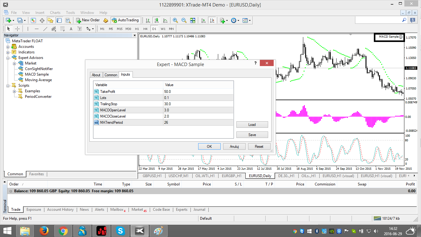 Enfin, vous devrez activer l’outil technique dans la plateforme. Une fois que vous l’avez trouvé, faites-le simplement glisser et déposez-le sur le graphique que vous souhaitez analyser. Une nouvelle fenêtre apparaitra : vous pourrez alors régler tous les paramètres avant de cliquer sur OK pour valider votre sélection. Votre outil devrait maintenant être activé. Si vous n’en êtes pas sûr, recherchez le nom de l’outil et un « visage souriant » dans le coin supérieur droit du cadre dédié au graphique. Ces deux éléments visuels confirment que votre outil est activé et en cours d’exécution.