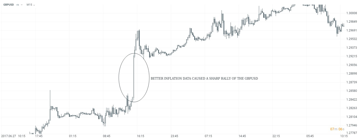 Observons un exemple. L’économie des Etats Unis a enregistré une hausse de 3% au premier trimestre de 2017, tandis que l'inflation a progressé de 2,5% par rapport à l'année précédente. La Réserve Fédérale a choisi d’augmenter les taux d’intérêt. Les taux d’intérêt ont augmenté, ils sont plus élevés, et les traders ont décidé de placer leur argent dans le dollar américain car il aurait dû générer un rendement plus grand. Un tel mouvement conduit à une demande plus élevée pour le dollar américain, ce qui entraîne une hausse des prix.