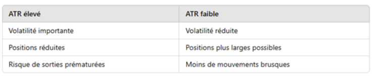 📌 Le conseil de l’expert : Un ATR en hausse signale une augmentation de la volatilité, ce qui peut indiquer un changement de régime du marché.