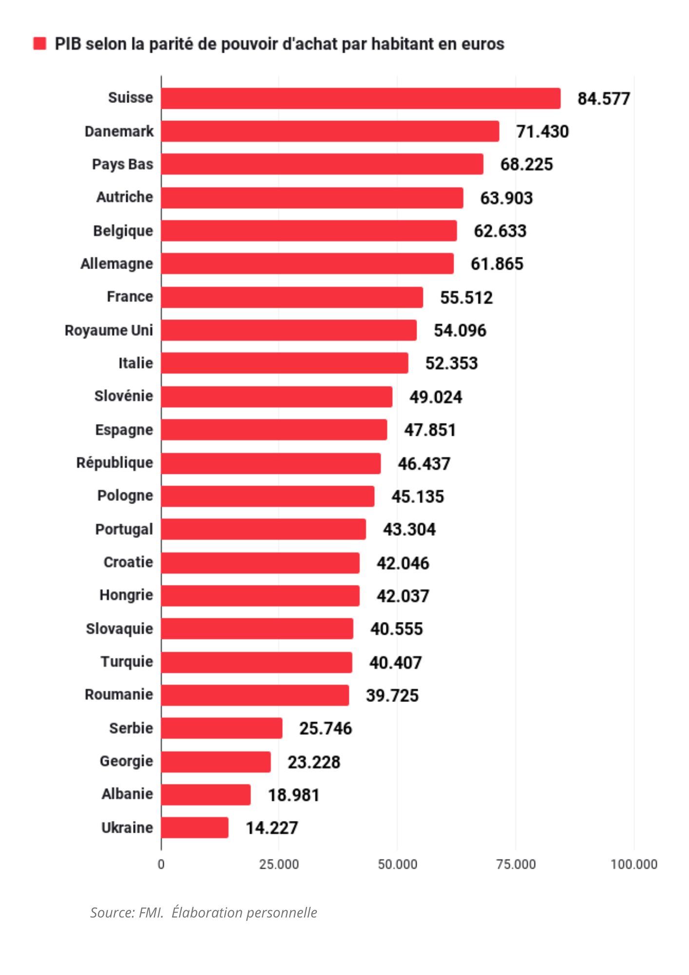 Cet indicateur permet de quantifier la création de richesse et la production d’une économie nationale tout en effaçant les perturbations générées par la taille de la population. Comme il est réalisé sur la base de la parité du pouvoir d'achat, il efface également les décalages générés par la différence de prix.