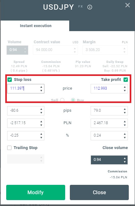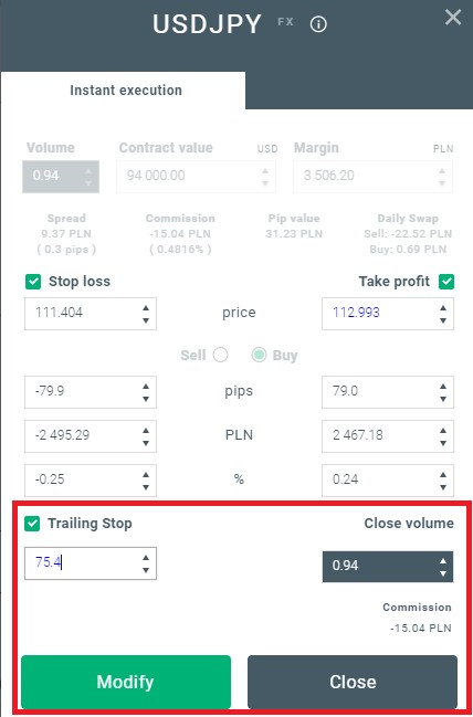 xStation 5 : Stop Loss, Take Profit & Trailing Stop