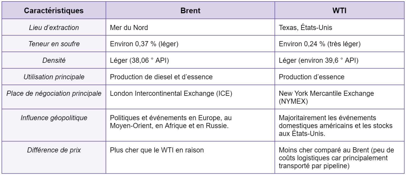Ces nuances entre le Brent et le WTI soulignent l'importance de la localisation et des caractéristiques du pétrole dans la formation des prix sur les marchés mondiaux.