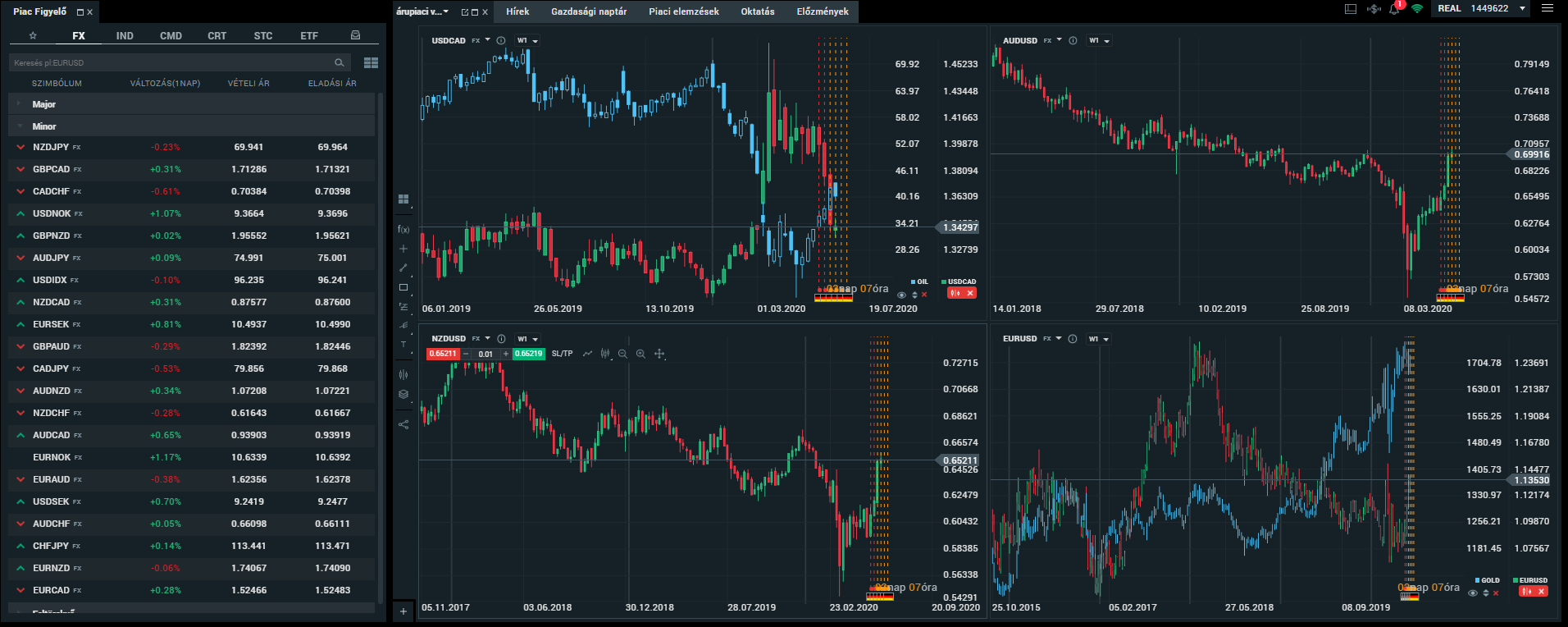 - Forex, valamint CFD szerződések formájában: tőzsdei indexek, nyersanyagok (Árupiac), kriptovaluták, részvények és ETF-ek.