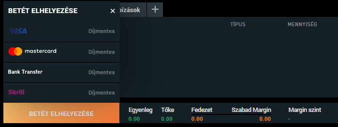 Miután a befizetés a számláján jóváírásra került, elkezdheti a kereskedést.