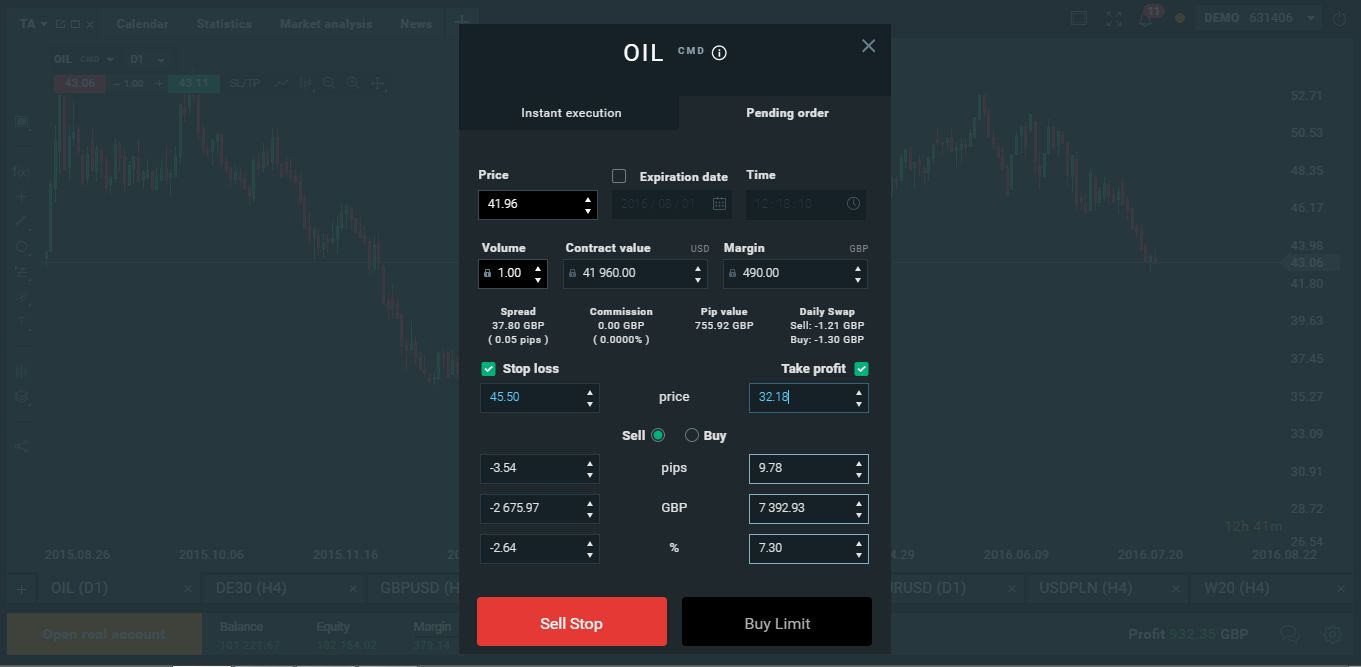 Az xStation platformban függő megbízásokat is adhatunk a grafikonról