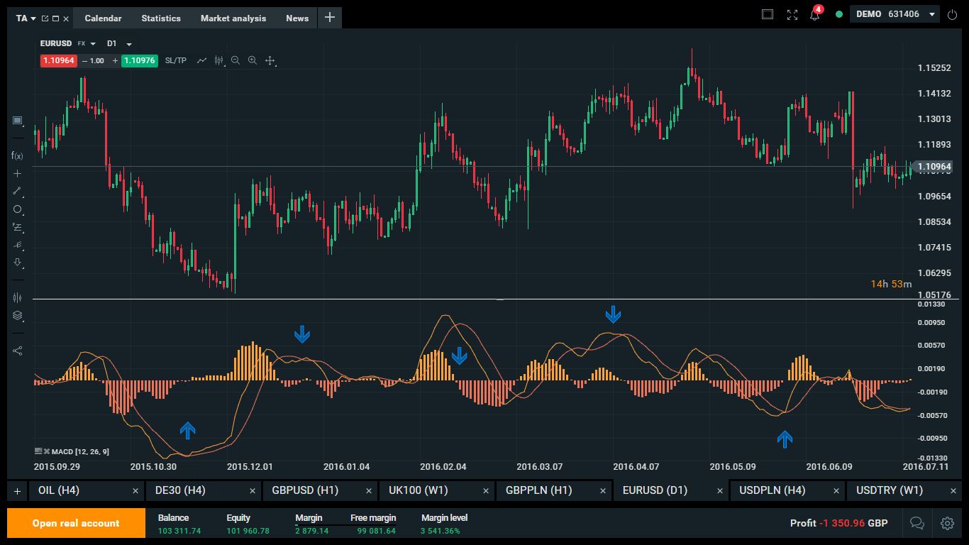 Több lehetőséget jelez nekünk a MACD kereskedés közben, az egyik legegyszerűbb, amikor a mozgóátlagok keresztezik egymást a narancssárga és a piros vonal a képen.