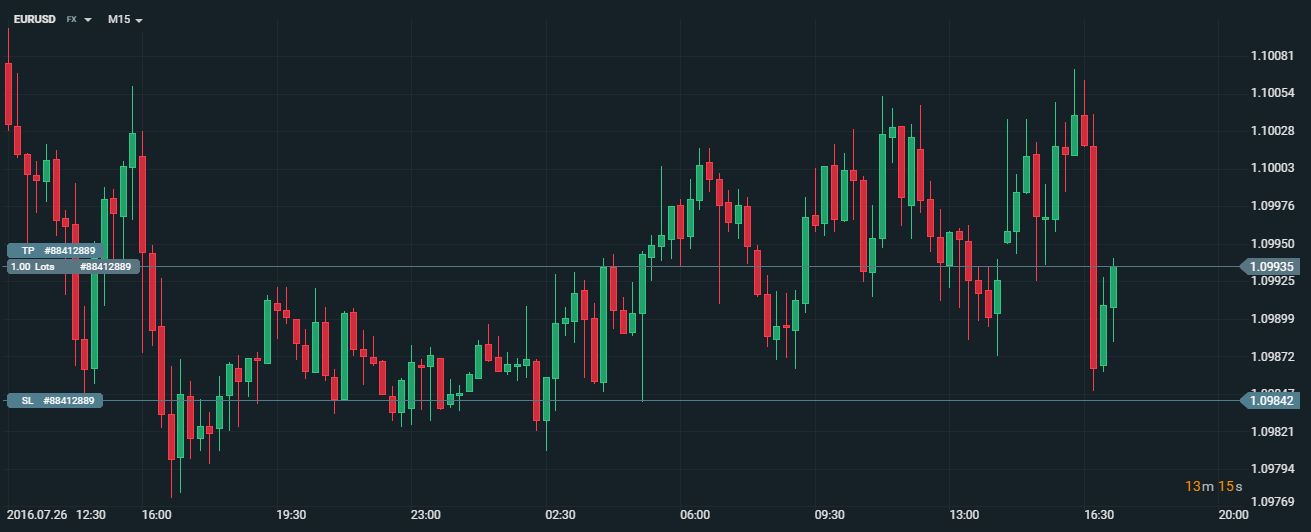 Nézzük meg a fenti példát, a kereskedő egy long (vételi) pozíciót nyitott az EURUSD eszközön, abban bízva, hogy az árszint a közeljövőben eléri az 1.09935-ös szintet. A nyitási szint alatt látható egy második szürke vonal, ez lesz a stop szintünk az 1.09842-as vonalnál. Ez azt jelenti, hogy ha az árjegyzés leesik erre a vonalra, akkor a platform automatikusan zárja a pozíciót és megvédi a további veszteségektől.