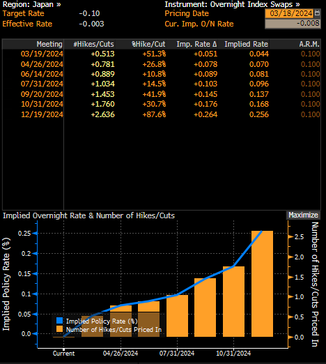 Bár a Bloomberg felmérésében a közgazdászok többsége arra számít, hogy a kamatlábak változatlanul -0,10%-on maradnak, meg kell jegyezni, hogy ezek az előrejelzések többnyire az éves bértárgyalások múlt heti eredményei előtt jelentek meg. Péntek óta számos revíziója volt a becsléseknek, és szinte mindegyikük vagy 10 bázispontos, 0,00%-ra, vagy 20 bázispontos, 0,10%-ra történő kamatemelésre utal.
