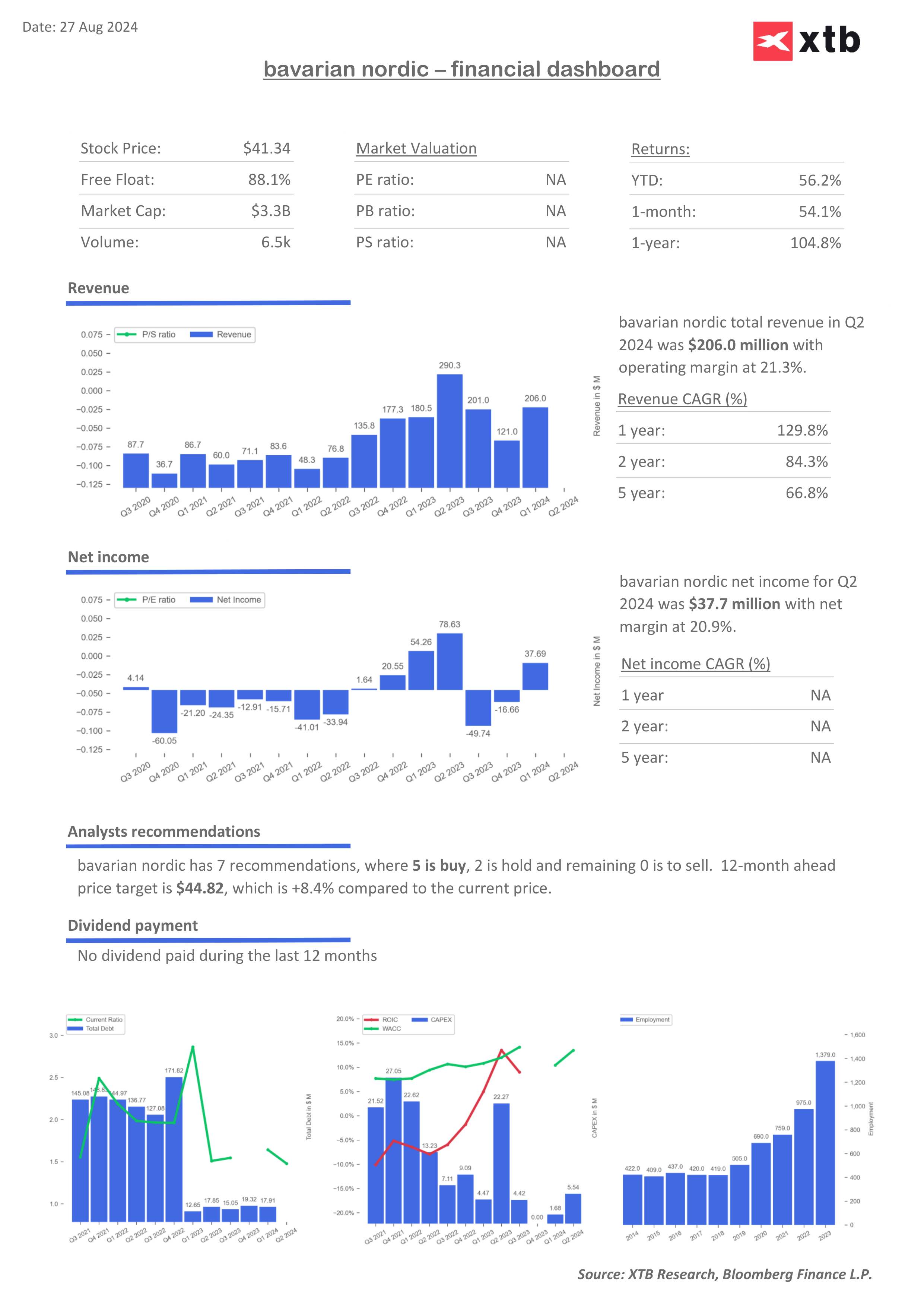 A Bavarian Nordic bevételei, eredményei és pénzügyi mutatói