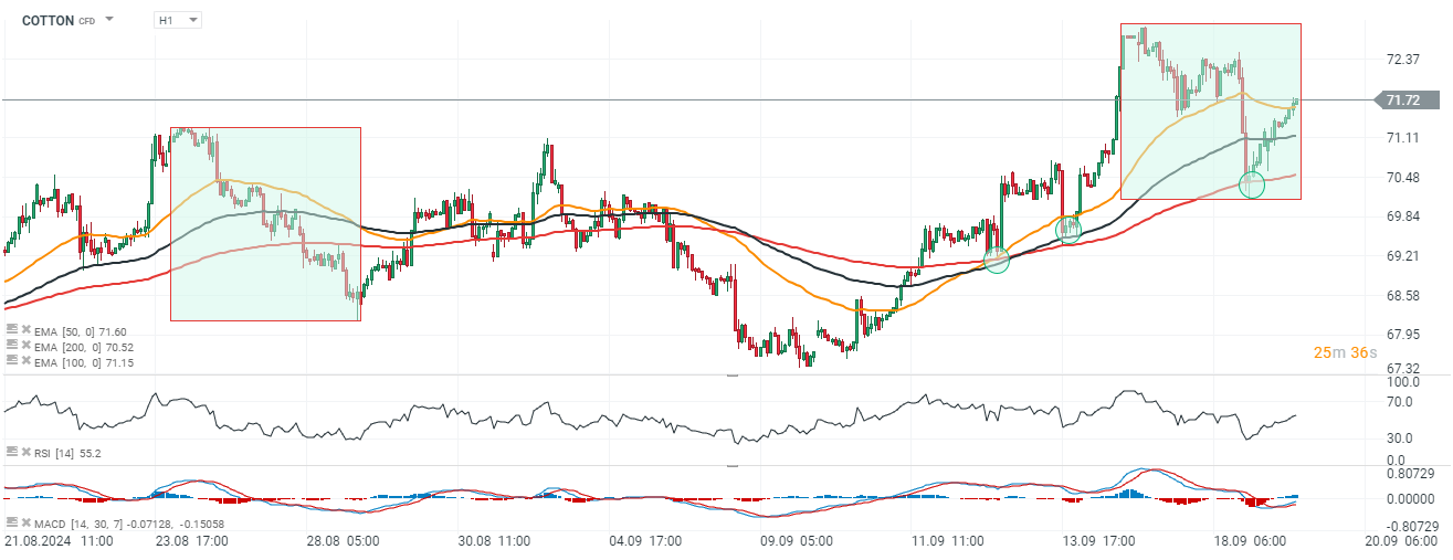 A még mindig nyitott amerikai hurrikánszezon közepette a kereskedők nagyobb gyapotaktivitásra számíthatnak, amelyet még mindig a nettó rövid, menedzselt pénzzel rendelkező pozíciók uralnak (a legutóbbi CoT-jelentésből). Az esőzések és árvizek olyan államokban, mint Oklahoma, Mississippi és Louisiana a gyapottermés szezonjában a javuló globális keresleti feltételek mellett rövid fedezethez vezethetnek, ami támogatja a tendenciát. A bálánként 70 dollár alá történő csökkenés azonban arra utalhat, hogy a piaci fogadások még mindig medvék, figyelmen kívül hagyva a fundamentumokat.