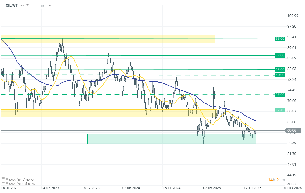 Ugyanakkor az ukrán támadások az orosz energiainfrastruktúra ellen – beleértve a finomítók, kikötők és a CPC fekete-tengeri exportterminál elleni támadásokat – felfelé nyomják a fizikai nyersolaj árait, és meredeken emelik a fekete-tengeri szállítási biztosítási díjakat, egyes esetekben 200–250%-kal is. Ezek a zavarok korlátozzák a regionális ellátást és visszatartják a szállítókat, bár a szélesebb kőolajpiac továbbra is nyugodtabb. Ezeknek a fejleményeknek köszönhetően az olajárak továbbra is viszonylag stabil tartományban, hordónként valamivel 60 USD felett mozognak.