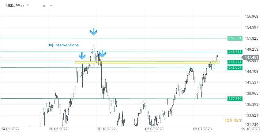 A kormány legutóbb az előző év októberében kezdeményezett ilyen intézkedéseket, jelezve a komoly aggodalmakat és a határozott fellépésre való készséget. Az USDJPY augusztusi, 145 fölé történő esése óta azonban a kormány enyhített a figyelmeztetésein, így a kereskedők bizonytalanságban maradtak a lehetséges intervenciós stratégiák tekintetében. A közelmúltbeli tendenciák szerint a jen ismét tíz hónapja nem látott mélypontra zuhant, megközelítve a kritikus szinteket. Piaci szakértők megjegyezték, hogy az USDJPY további, 150-es szintet elérő merülése potenciálisan a fordulópont lehet, amely a kormányt ismét piaci beavatkozásra kényszeríti.