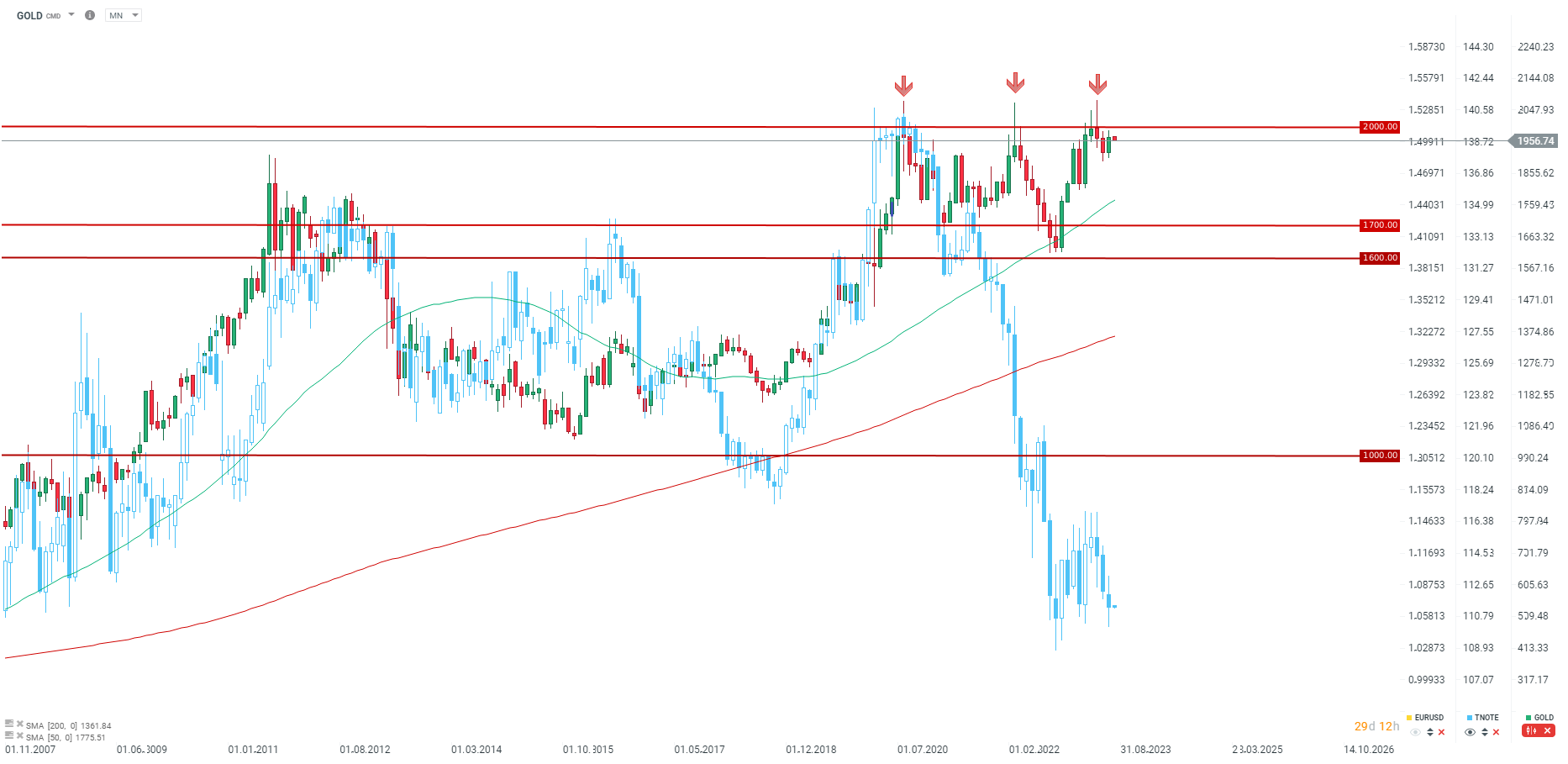 Az arany nyereséggel zárja a júliust, ami potenciálisan érvényteleníti a medvés hármas csúcsmintát. Mindazonáltal valószínűnek tűnik egy 1.900-2.000 dolláros tartományban zajló sávos kereskedési időszak a folyó negyedévben. Forrás: xStation5