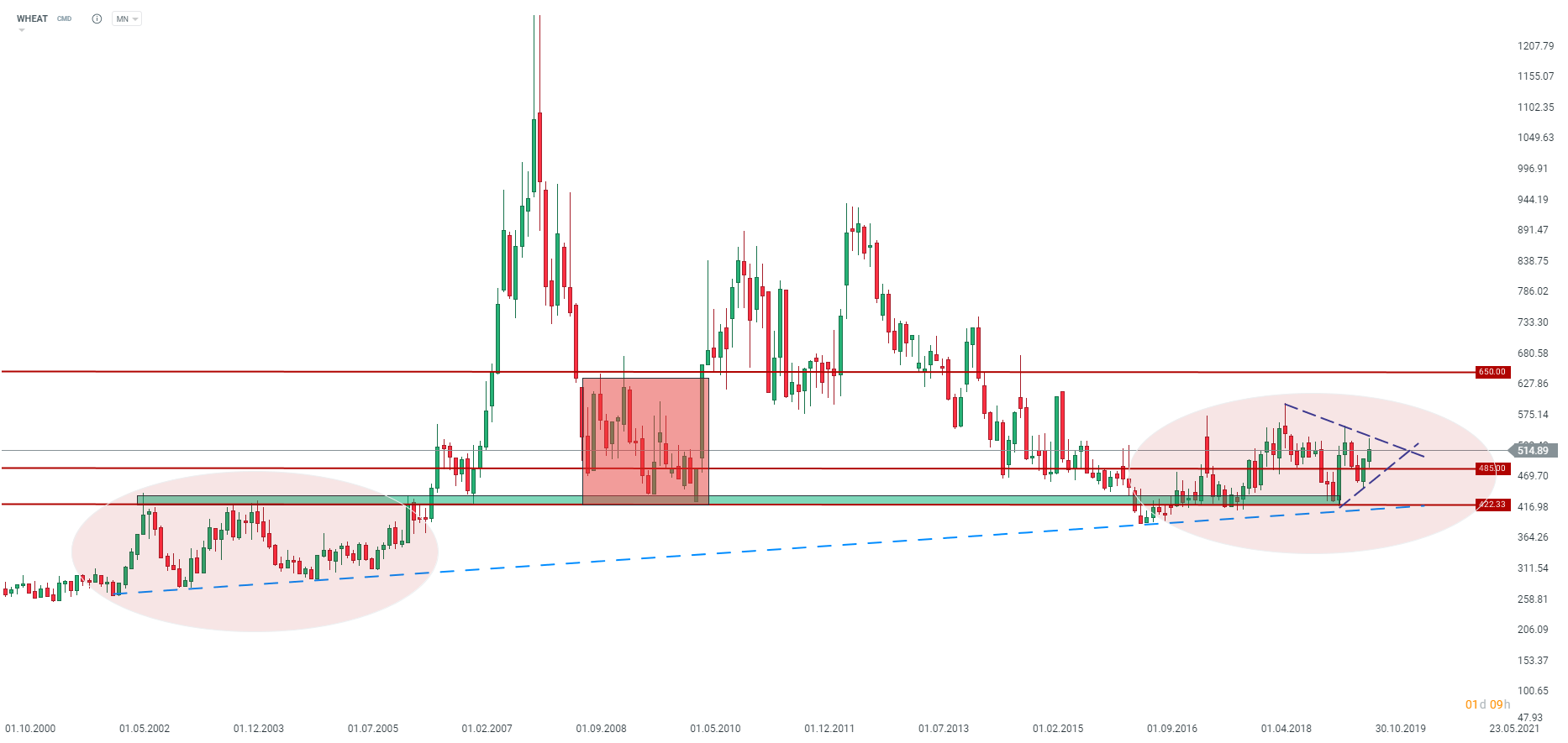 A globális búzakészlet továbbra is óriási, ez korlátozhatja a tartós áremelkedést. Forrás: xStation5