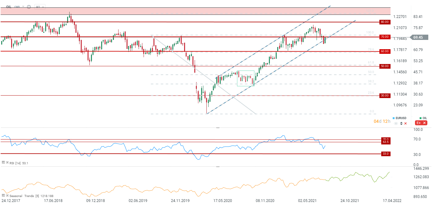 Brent (OIL) recovered almost all of the losses from last week. Seasonal patterns point to a potential rebound in the first week of September and another one in mid-October. Source: xStation5