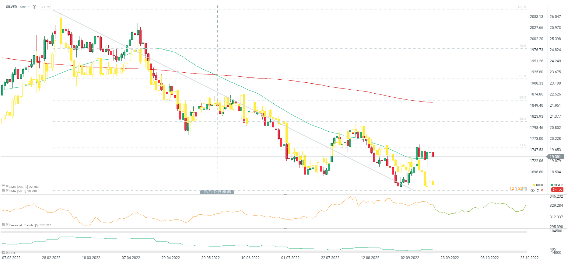 A significant divergence between gold and silver can be spotted over the past few days. Moreover, we can see that seasonal patterns are unfavorable in the near-term. Source: xStation5