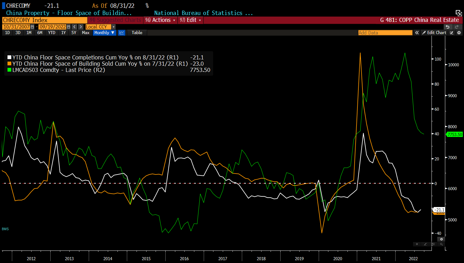 Data from Chinese housing markets shows that real demand for copper may be really low and prone to fall further. Source: Bloomberg