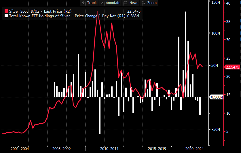 Silver ETFs are experiencing the longest streak of quarterly sales - 3 quarters