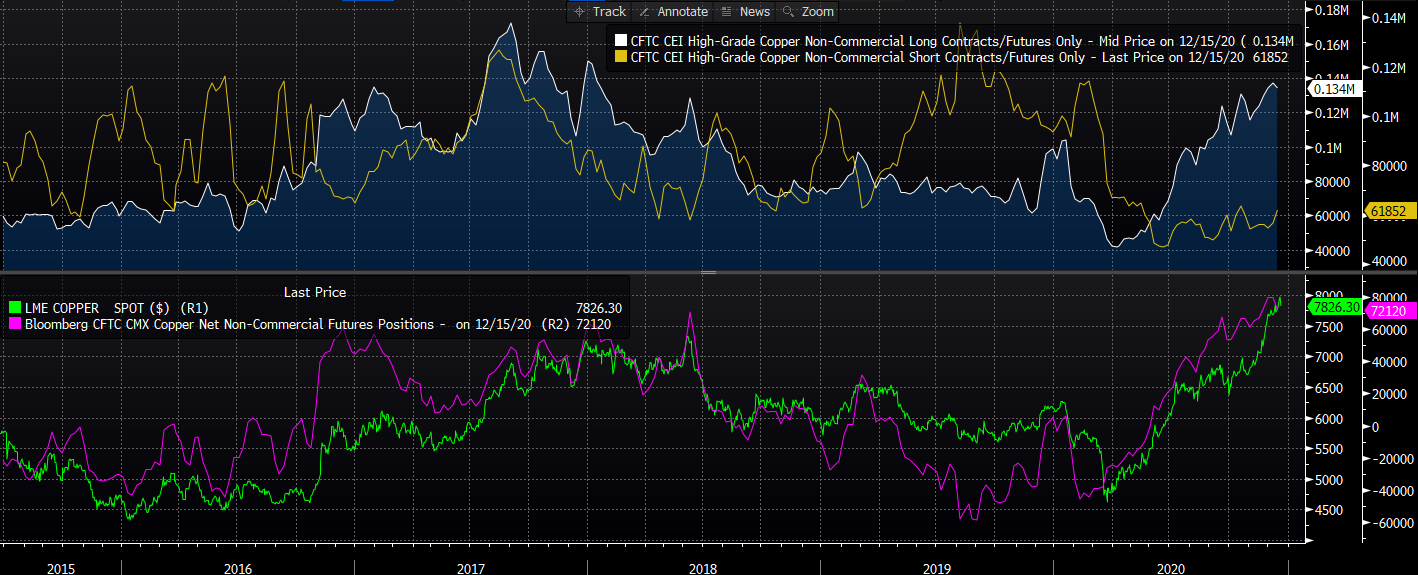 On the other hand, a slight reduction in net positioning could have been spotted recently as traders added bearish bets. Bullish bets remain near multi-year highs. Source: Bloomberg