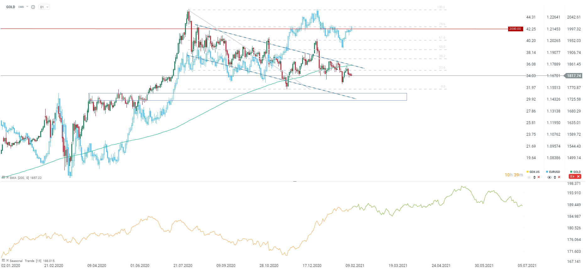 The key support for gold is located around $ 1730 an ounce. Theoretically, seasonality indicates that these levels could be reached in March, but from then on, the gold price should resume its upward trend. Source: xStation5