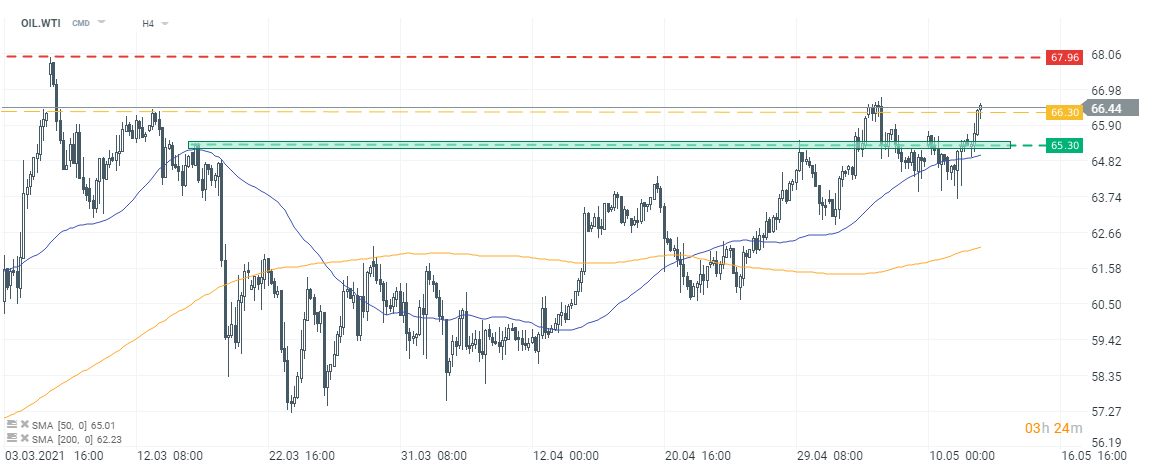 OIL.WTI did accelerate today, climbing above $66.30 a barrel. However, the market changed the direction for a while following the EIA’s data with oil prices tumbling almost half a percent. This does not change the fact that buyers are currently trying to regain control thus climbing back above $66.30. Should the upward momentum continue, the critical resistance may be found just slightly below the $68 mark (early-March highs). Source: xStation5